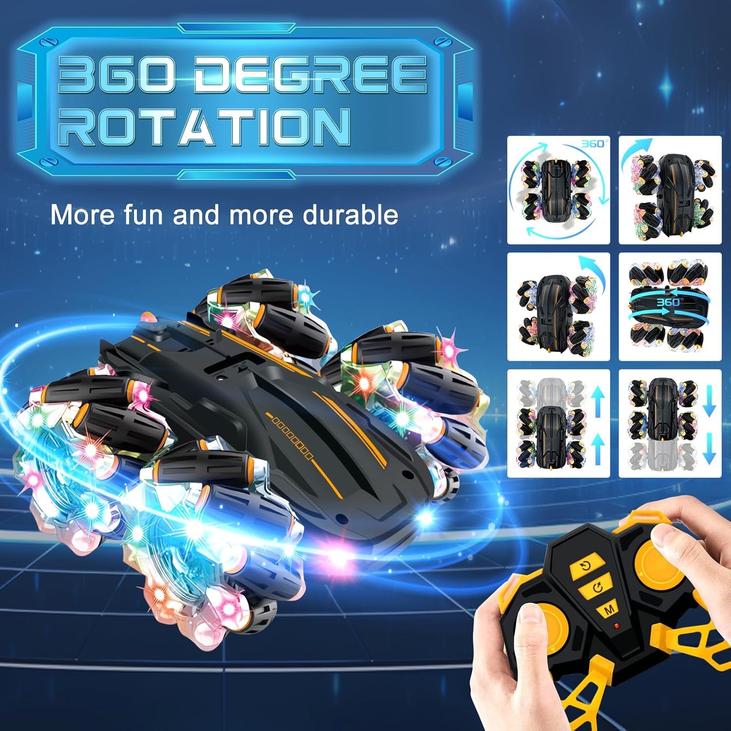 Get ready for action-packed fun with the 360° Stunt RC Car designed for dynamic performance and exciting tricks. Featuring omnidirectional wheels, full rotation capability, and powerful 4WD drive, this toy delivers an engaging and thrilling play experience.