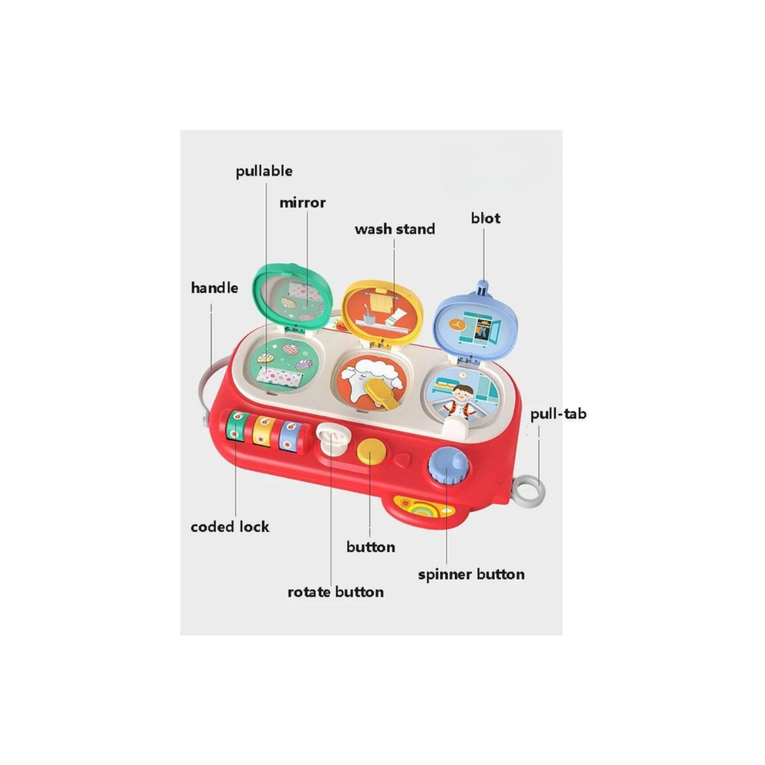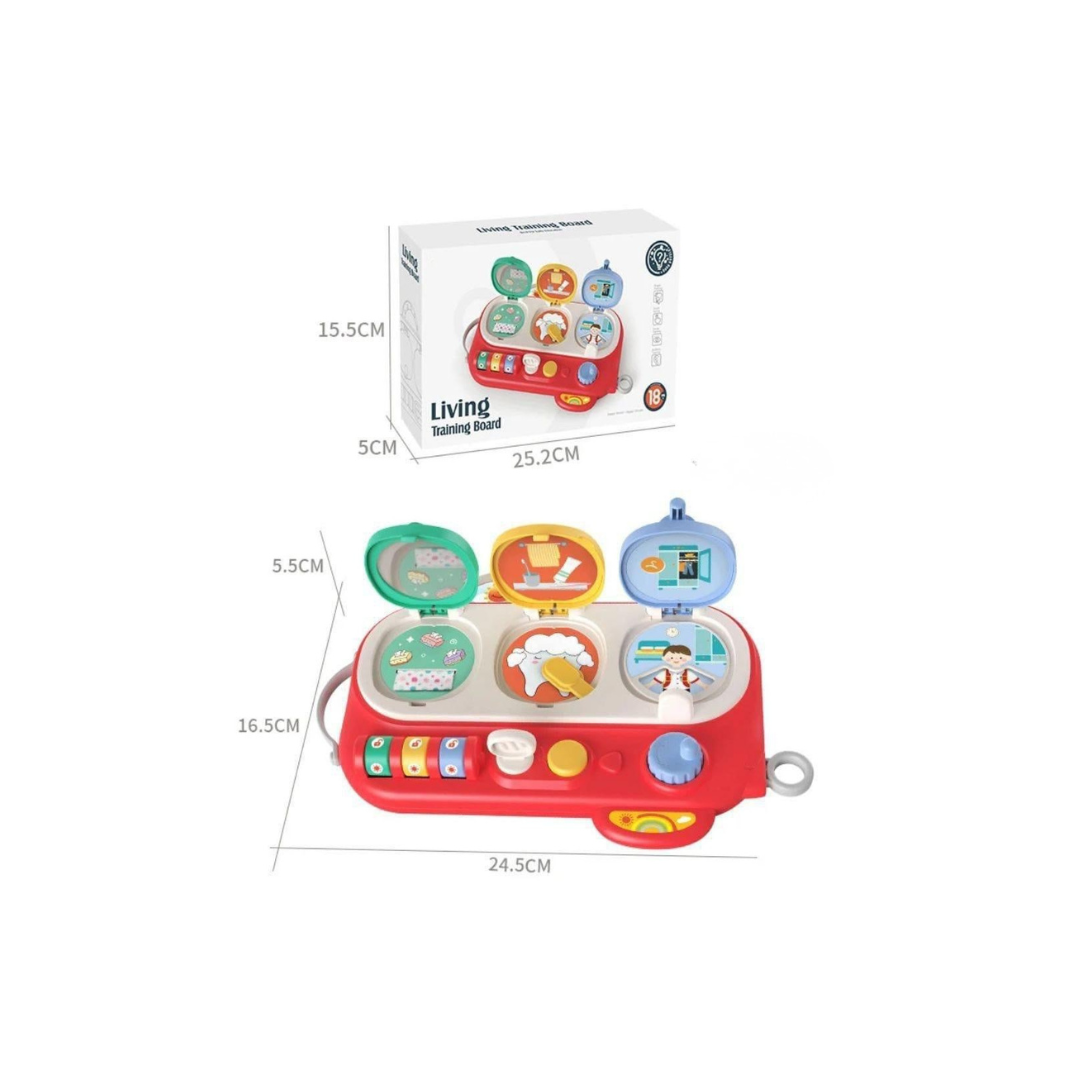 The Baby Living Training Board is an interactive early learning toy designed to introduce babies and toddlers to everyday life skills through fun and play. Featuring multiple flip-up panels, buttons, rollers, and turning knobs, this activity board keeps little hands busy while stimulating curiosity and imagination.