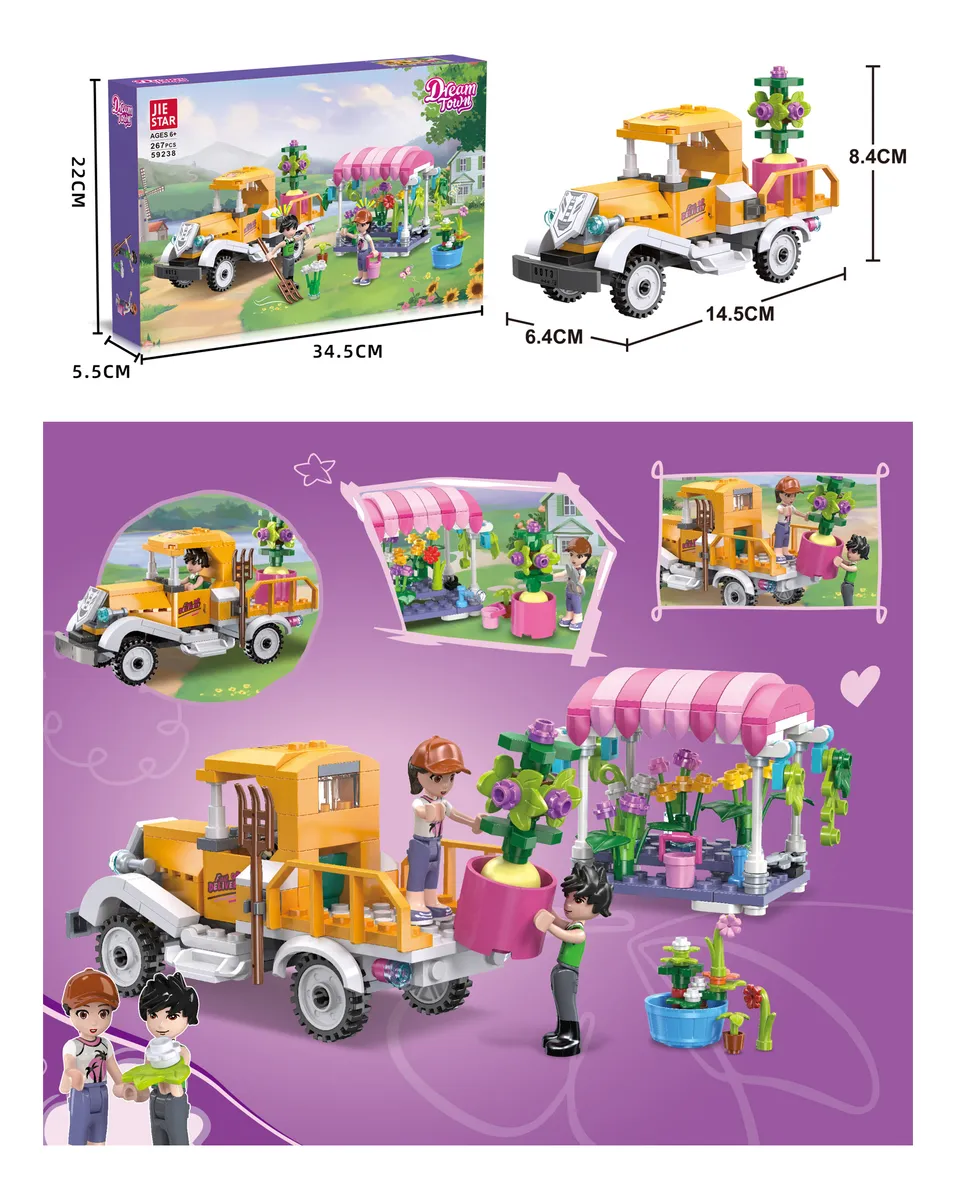 Let kids explore creativity and imaginative play with the Dream Town Garden Delivery Truck Building Block Set. This colorful 267-piece construction toy allows children to build a charming garden scene featuring a delivery truck, flower stand, and fun character figures. Designed to encourage creativity, problem-solving, and fine motor skills, this set provides hours of engaging and educational play.
