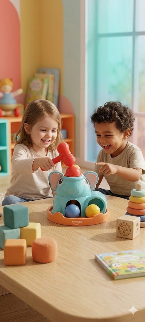 The bright colors and cute elephant design capture children’s attention and encourage active play. As kids knock the balls through the holes, they develop important skills like hand-eye coordination, fine motor skills, and focus.