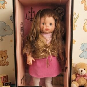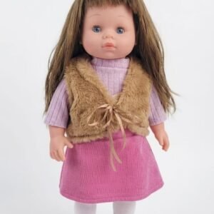 The Eufan Baby Doll is a charming and realistic toy designed to delight children aged 3 and above. She features long, soft brown hair and expressive blue eyes, giving her a lifelike and lovable appearance. Dressed in a stylish pink dress paired with a cozy faux-fur vest, she brings a touch of elegance to playtime.