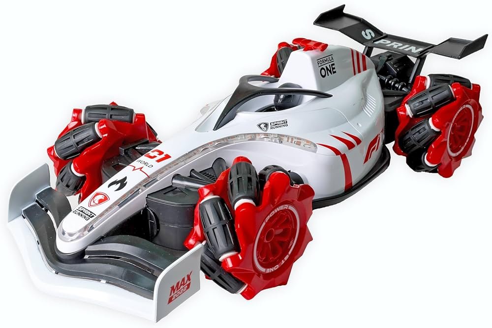 Take racing excitement to the next level with the F1 Double Spray RC Stunt Car! Designed with a futuristic Formula 1 style, this remote control car features amazing stunt movements along with cool double spray effects that create a realistic racing atmosphere. With dynamic lights, music effects, and high-speed performance, kids can enjoy thrilling action both indoors and outdoors.