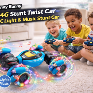 Enjoy endless fun with the Funny Bunny Stunt Twist RC Car! Designed with flexible wheels for amazing 360° stunts, featuring exciting lights and music effects that make playtime more thrilling.