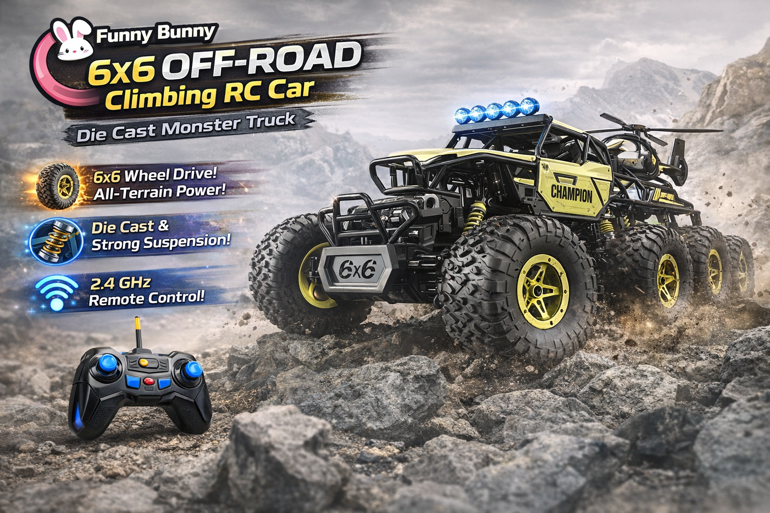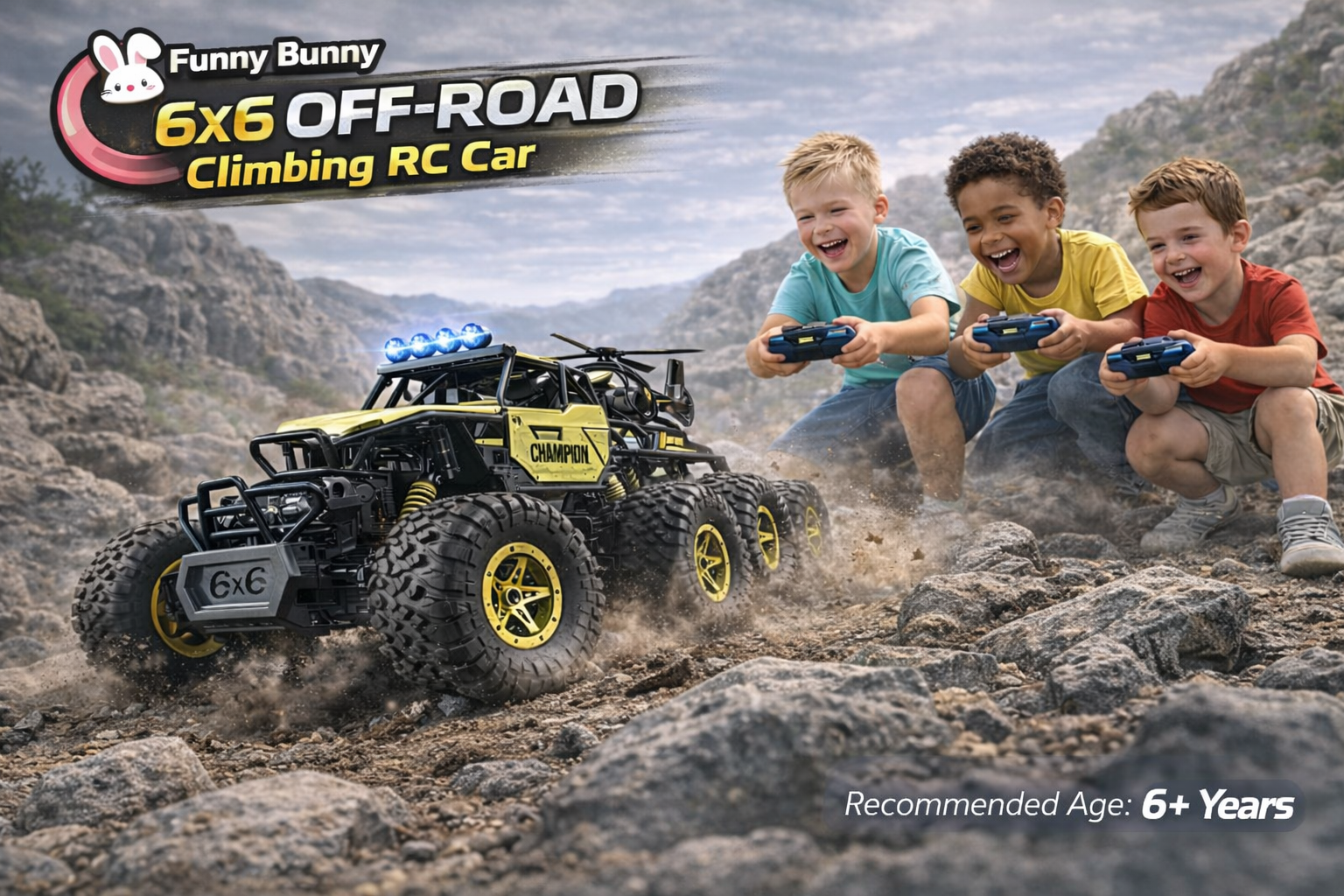 Get ready for unlimited adventure with the powerful 6×6 Off-Road RC Climbing Car! Designed with large rubber tires and a strong suspension system, it easily handles rocks and rough surfaces, delivering an exciting driving experience for kids.