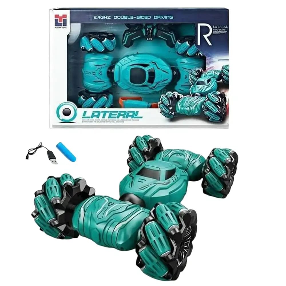Experience exciting action with the Double-Sided Lateral Stunt RC Car! Designed to drive on both sides with amazing 360° stunt moves, offering smooth performance on different surfaces. Equipped with a fast-response 2.4GHz remote control for endless fun.