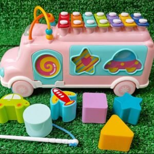 The HUANGER Musical Activity Bus is a multi-functional educational toy designed to support early childhood development through fun and interactive play. It combines music, shape sorting, and pull-along movement to enhance sensory skills, motor development, and early learning.
