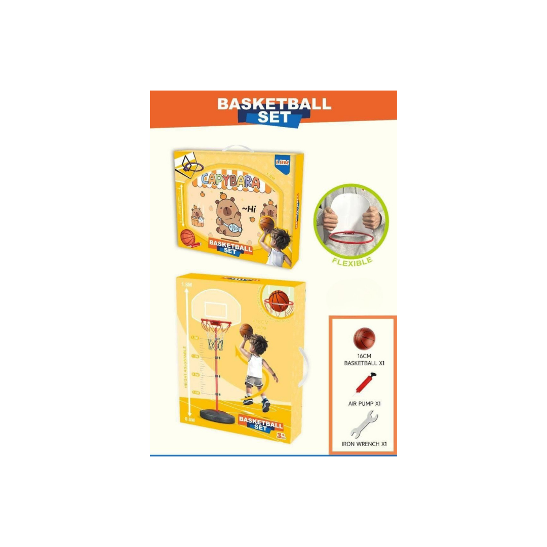 A fun and interactive kids basketball set designed to help children enjoy sports while developing coordination and motor skills. The set features a flexible backboard, an adjustable-height stand, and everything needed to start playing right away. Perfect for indoor or outdoor use, it encourages active play, confidence, and a love for basketball from an early age.