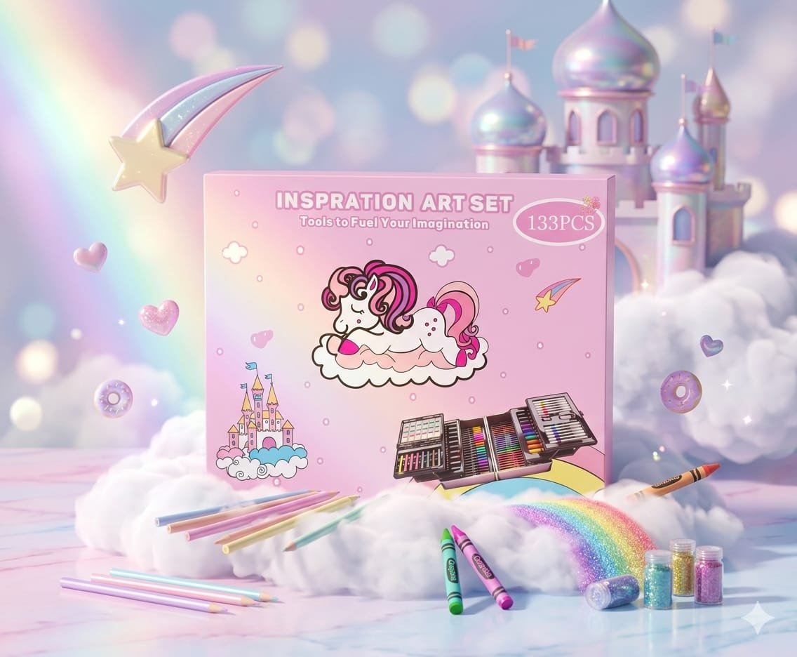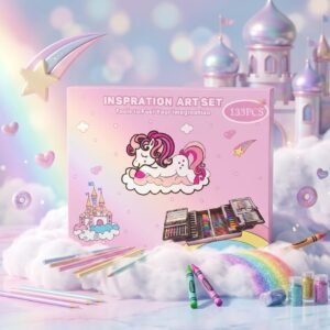 The Magical Dreams Art Set is more than just a coloring kit—it’s a gateway to a fairytale world. Designed to fuel imagination, this massive 133-piece collection is perfect for children who love to draw, sketch, and dream big. Featuring a charming unicorn and castle theme, it’s the perfect companion for every creative adventure.