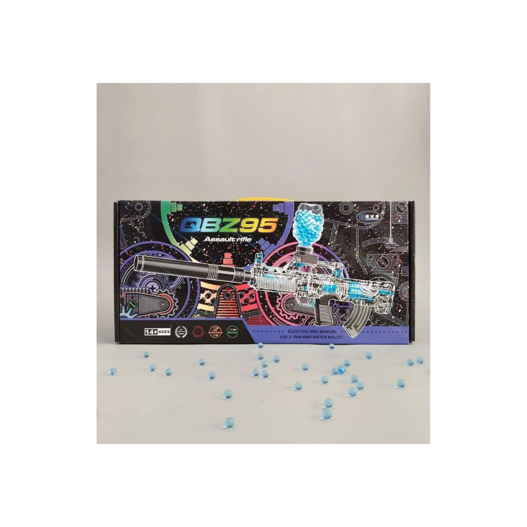 The QBZ95 Electric Gel Blaster Assault Rifle is an exciting action toy designed for kids and teens who love tactical play. Inspired by the real QBZ95 design, this toy features a modern look with a detachable silencer-style barrel and transparent body details.