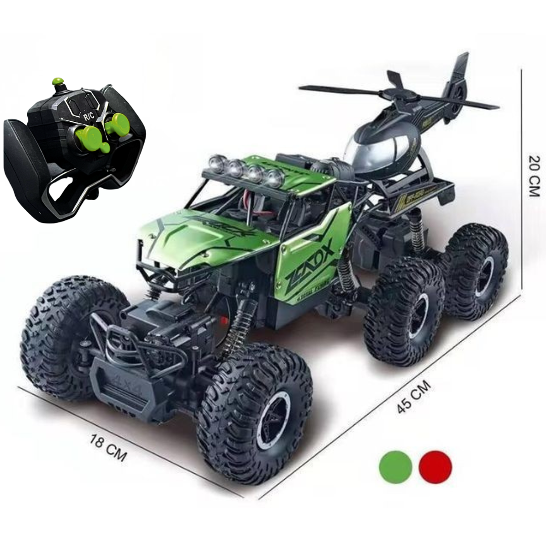 Featuring a rugged rock-crawler design, oversized tires, and a unique helicopter trailer, this toy delivers an exciting off-road experience that kids instantly love. Built for durability and performance, it easily handles sand, rocks, tiles, and outdoor surfaces.