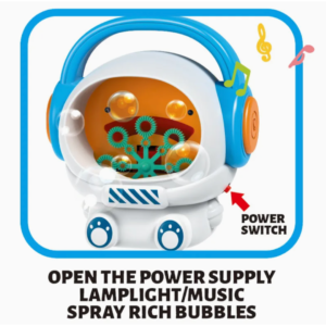 This adorable astronaut-themed bubble machine automatically produces rich streams of bubbles while playing music and glowing lights, keeping kids entertained for hours indoors and outdoors.