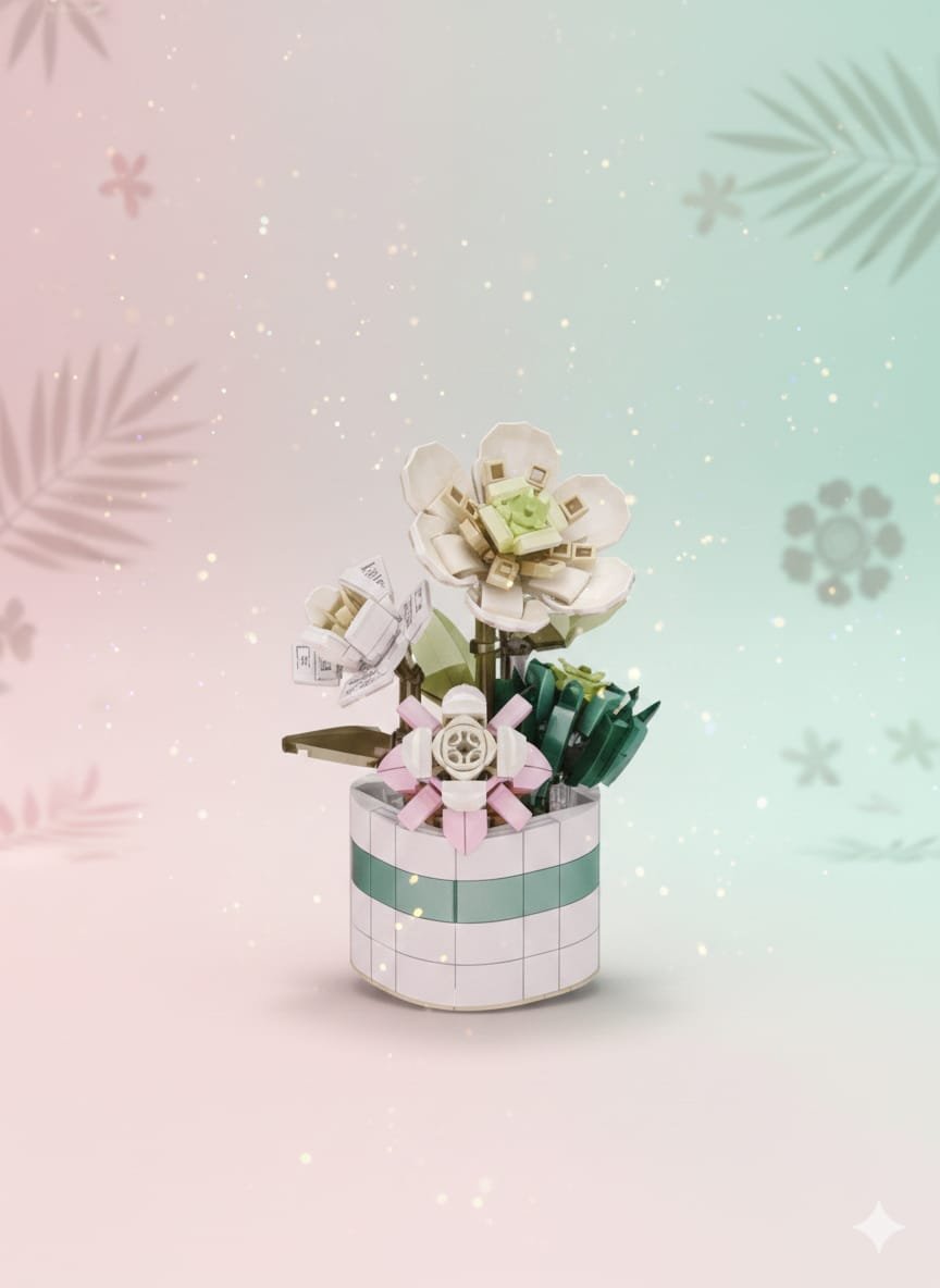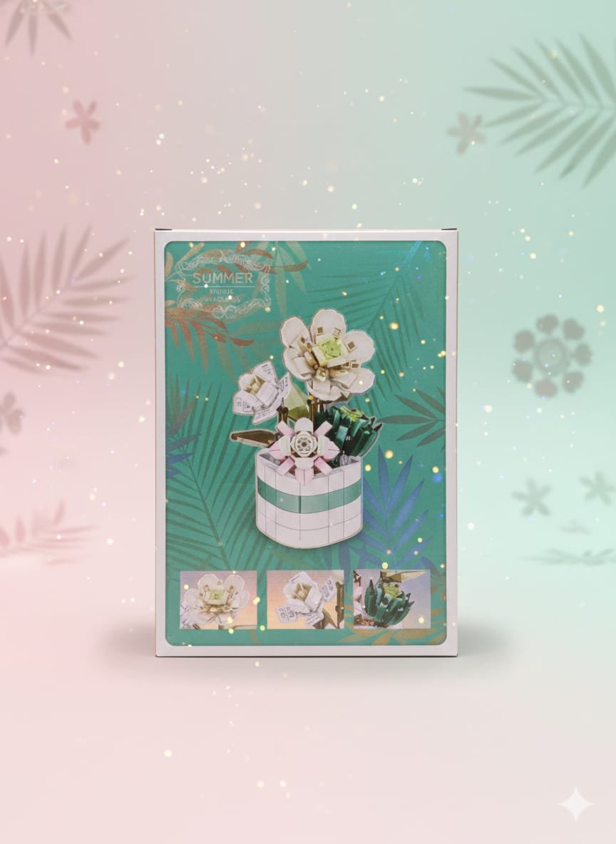 A creative floral building toy that allows kids to assemble a stunning summer-inspired flower arrangement with elegant pastel colors and crystal-style details. Once completed, it becomes a beautiful decorative piece for bedrooms, desks, or study corners.