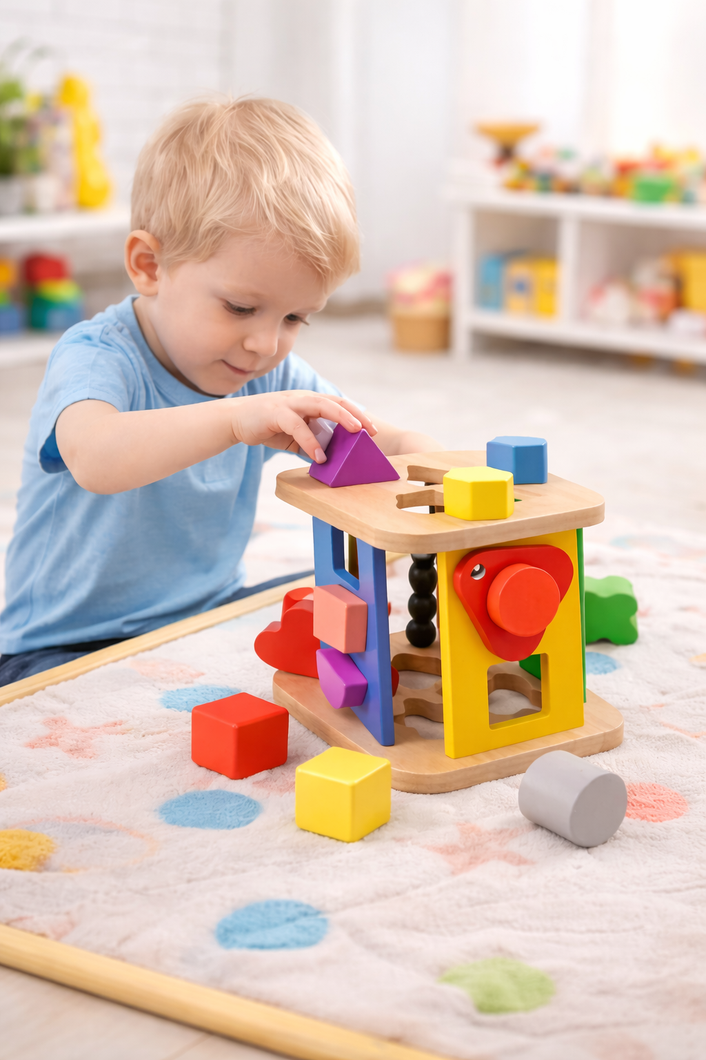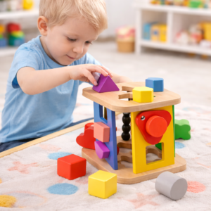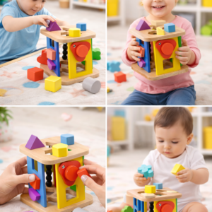 Made from child-safe materials with smooth edges, the sturdy wooden design ensures durability and safe playtime for toddlers. The bright colors and engaging shapes help improve shape recognition, color awareness, and sensory exploration, making it an ideal early-learning toy.