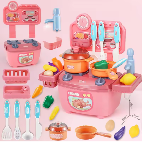 Interactive Toddler Kitchen Playset – This realistic kids kitchen playset is the perfect kitchen set for toddlers, featuring a realistic play stove, pretend sink with running water, fridge, oven, and many kitchen toys. Packed with play food, utensils, and accessories, this play kitchen set for kids inspires creativity, learning, and social skills. Ideal toy kitchen sets for toddlers. It’s a durable kids kitchen set for immersive role play,